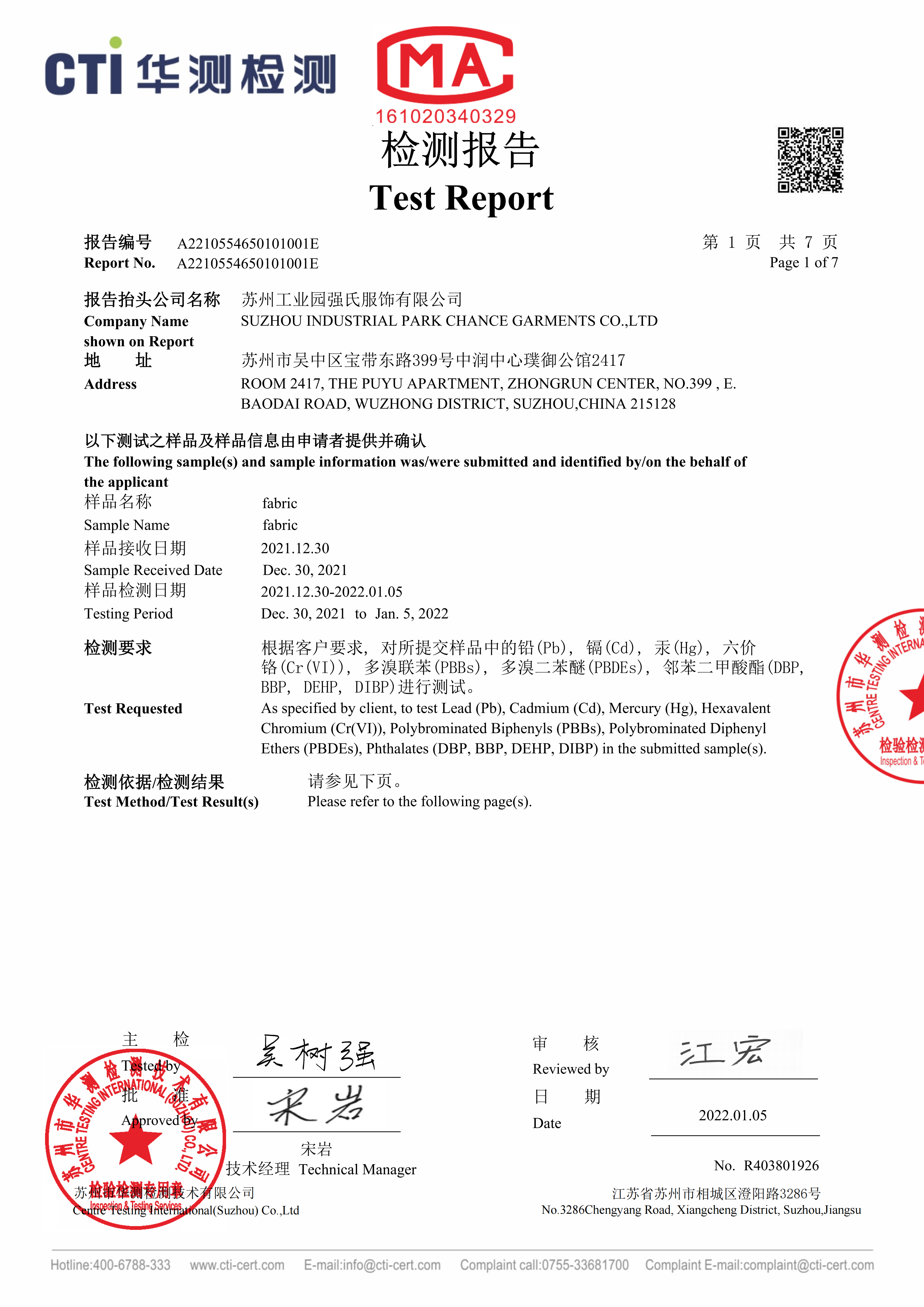 • Suzhou Industrial Park Chance Garments Co.,Ltd.